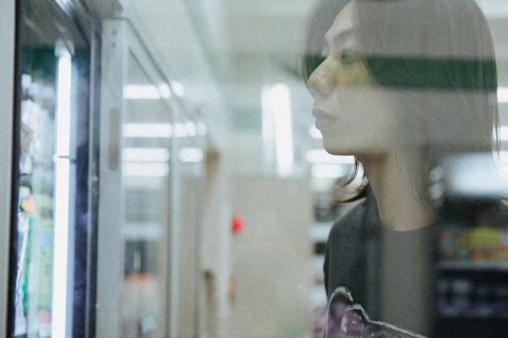 ヒッチコックの『めまい』のように、公に認識されている社会的なアイデンティティと私的で個人的なアイデンティティ、この2つの矛盾が、バーチャルとリアルの間を行き来することで、亡霊のように彷徨い変容し、記憶として乳化し合う。コンビニの儚い灯りや、懐かしい日本の昭和の家と色あせたネオンがメランコリックに重なり合い、幻想と現実のあいだを、時の流れとともに漂う。